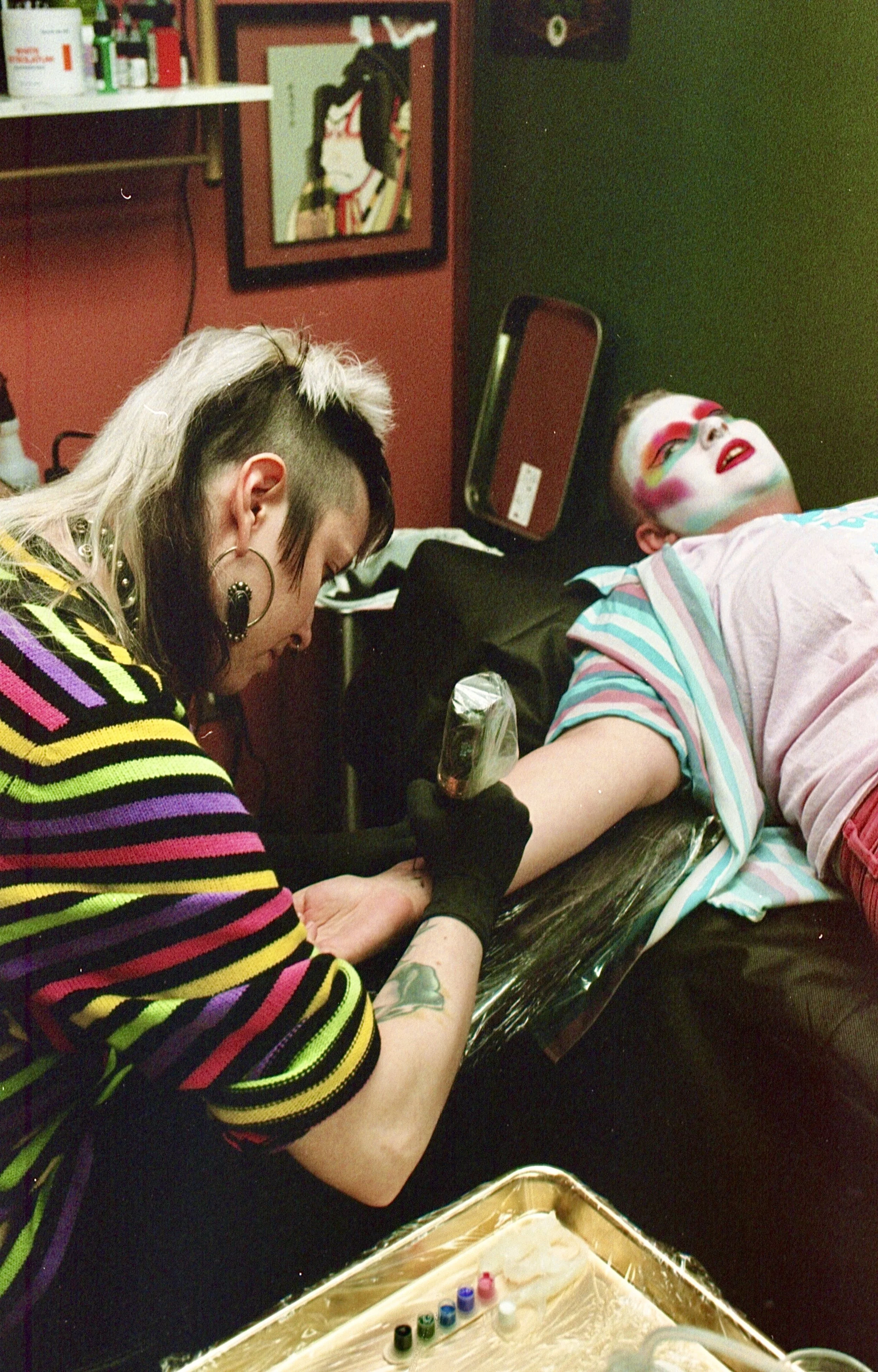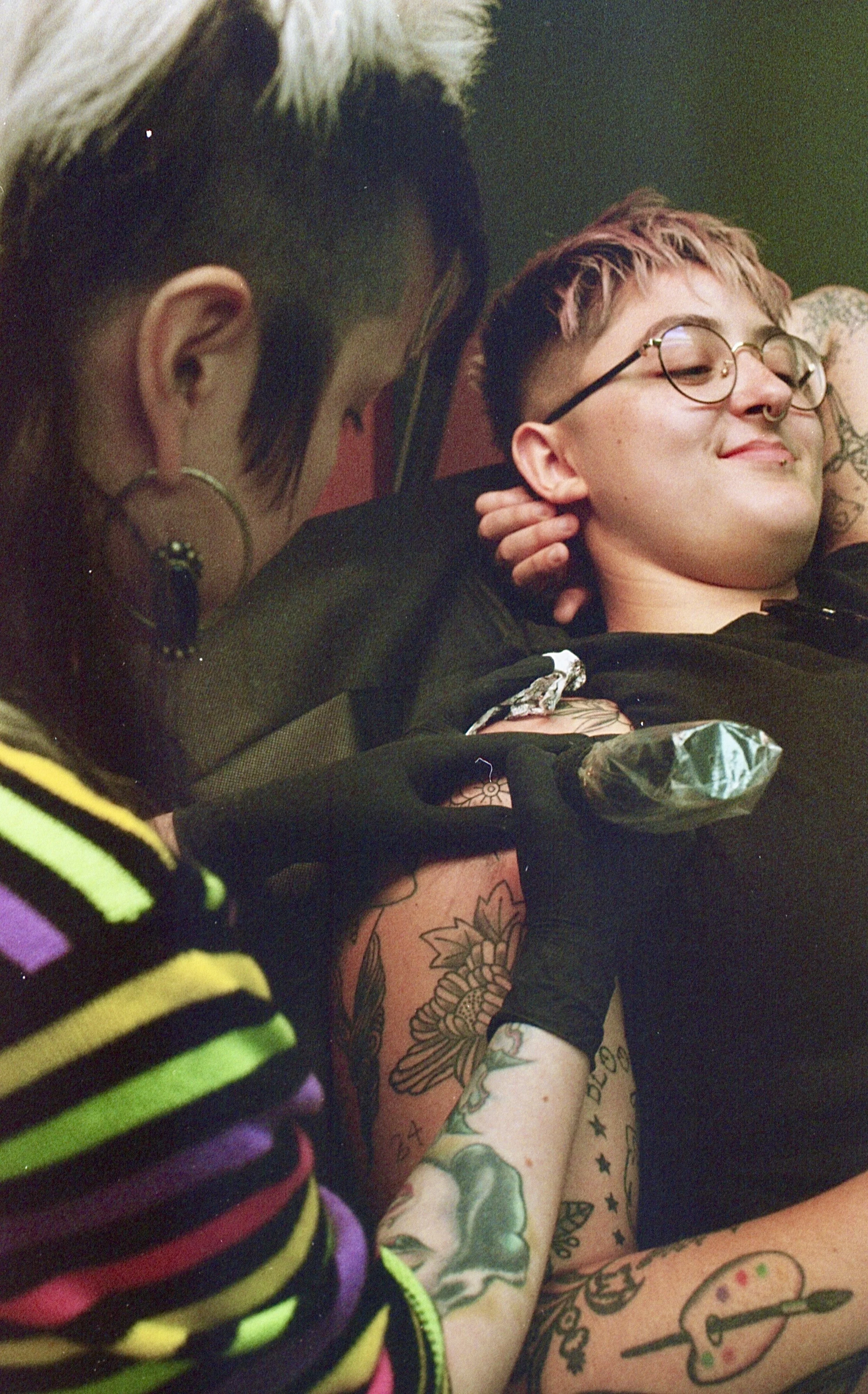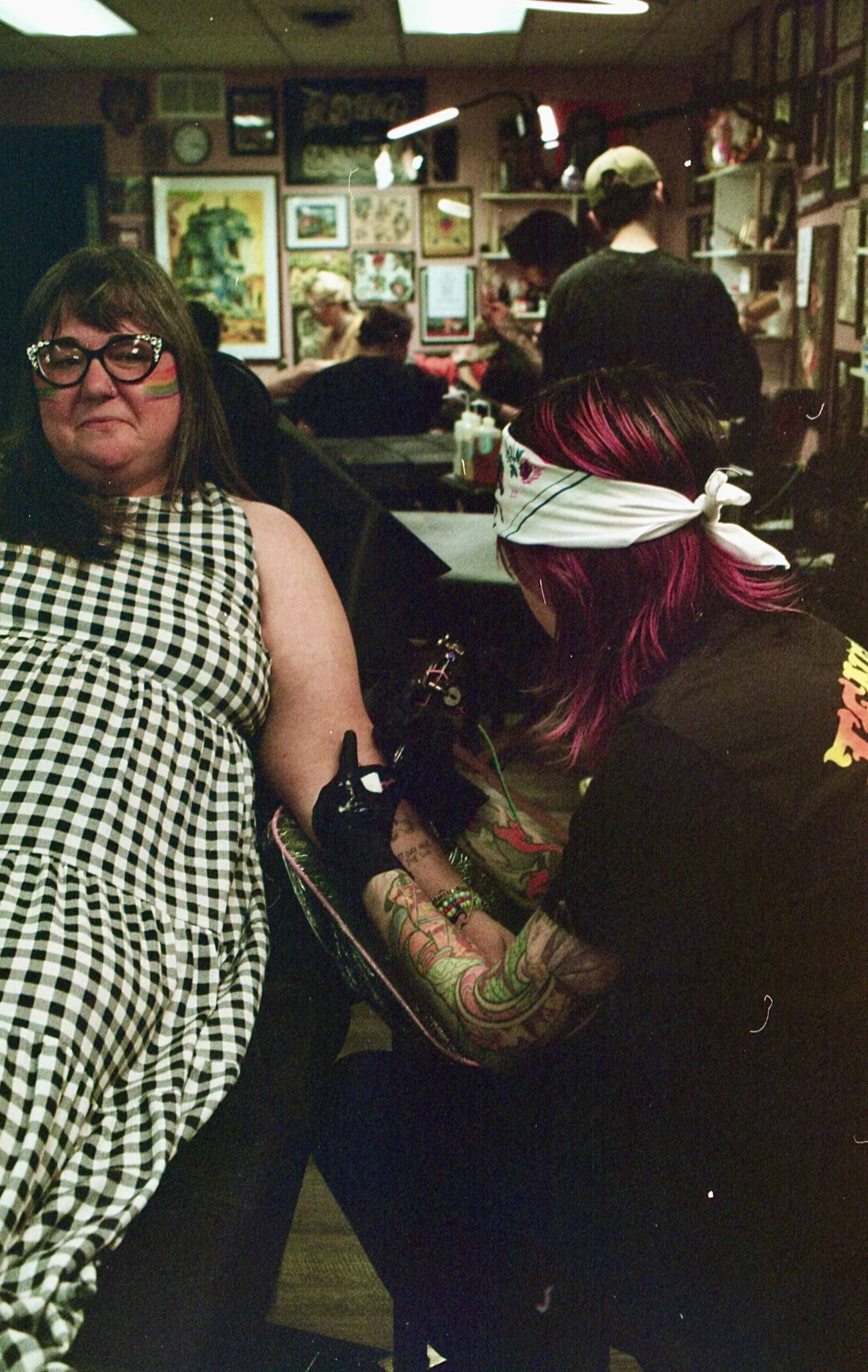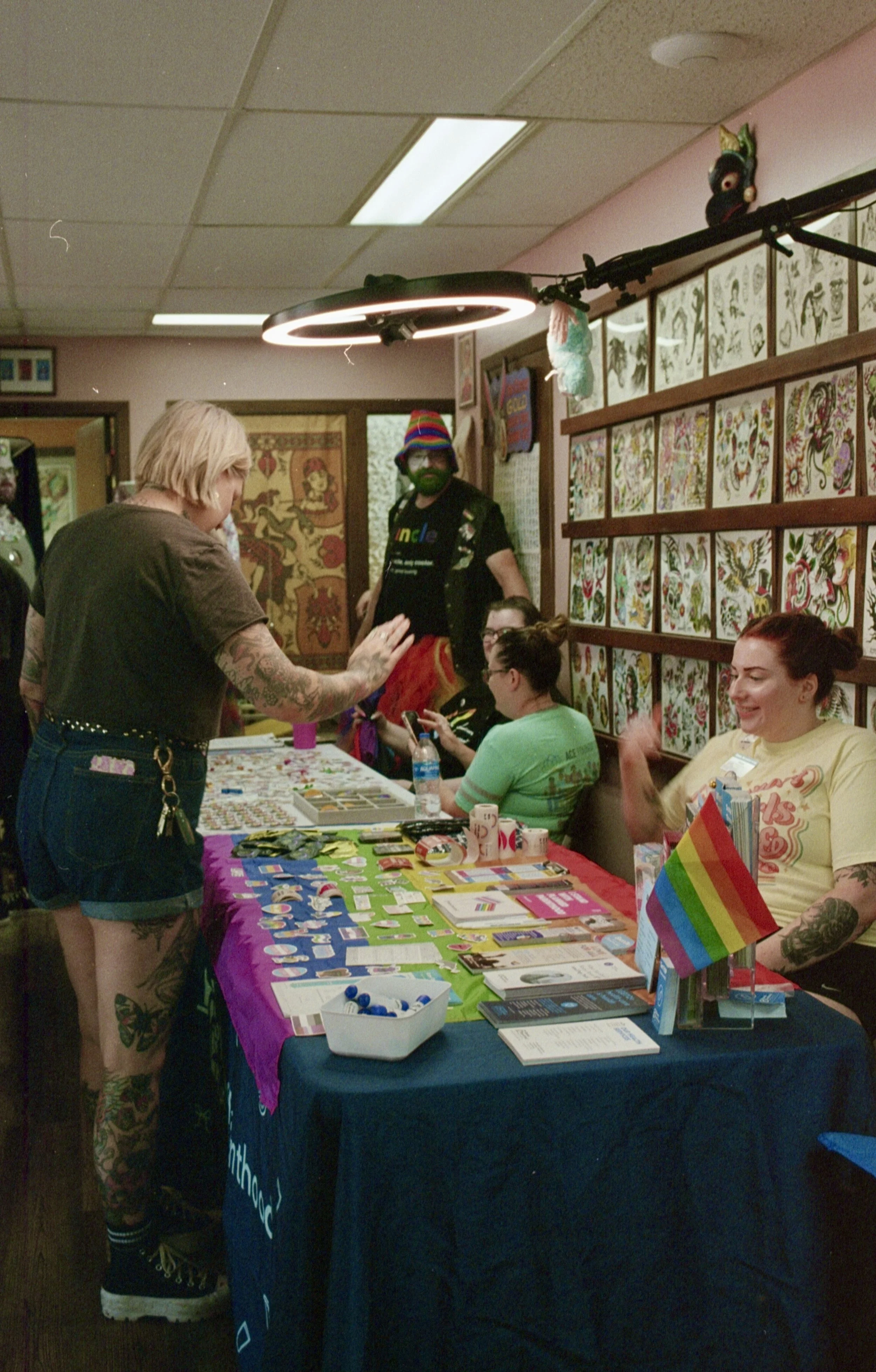 LGBTQIA + friends and family, the only way I know how-through tattooing! When I brought it to my good friend Sister Leeva, she felt it was her calling and mission to help bring it to life. Soon, White Crow Cider Company offered their amazing, welcoming space as a place for folks to gather and commiserate while sipping on libations, both alcoholic and non-alcoholic, and meet some great community resources!