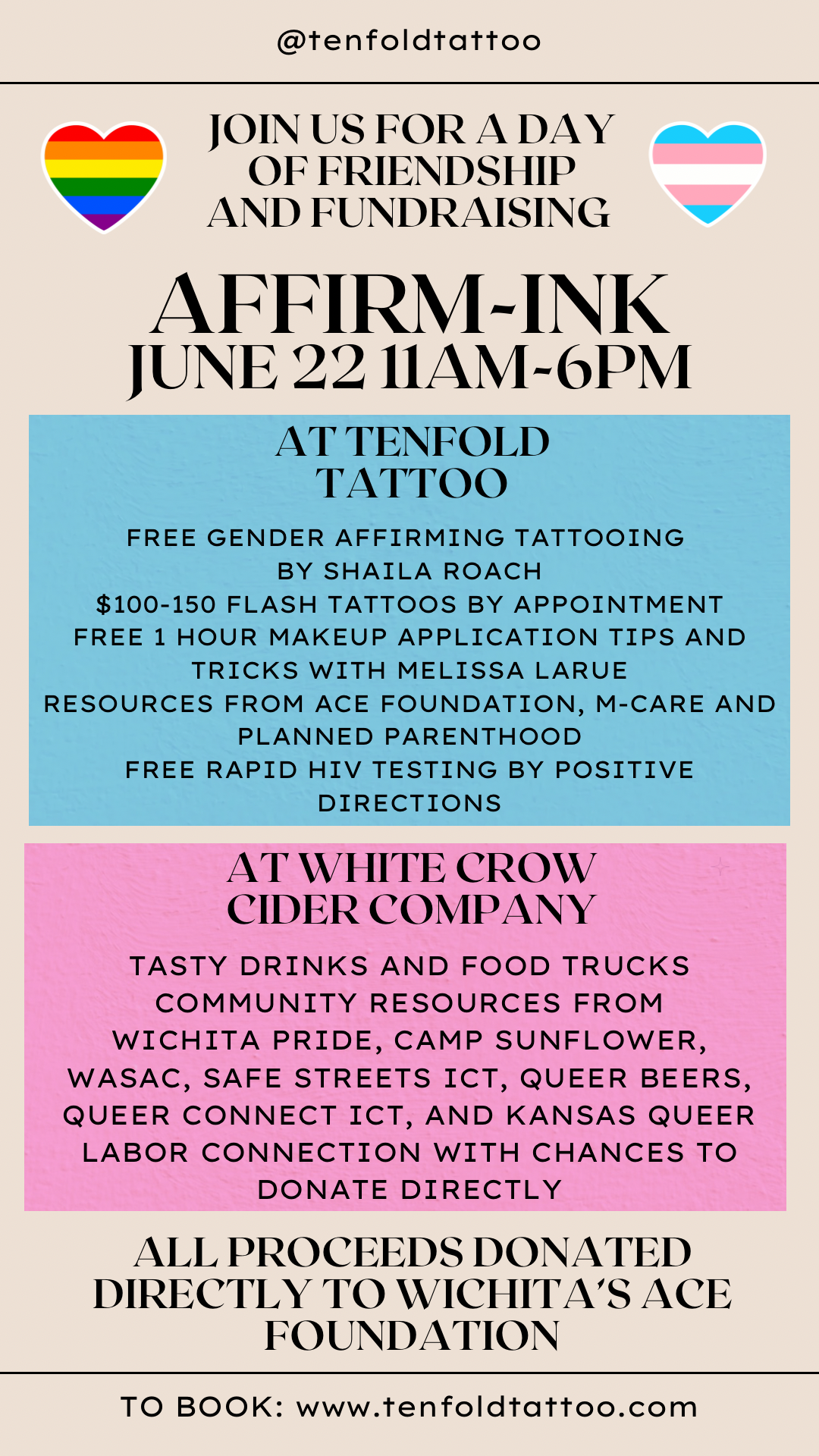 Heads up! We @tenfoldtattoo and friends are joining forces with Novice Sister Leeva Wetspot of the Emerald City Sisters, @tiffalicious_rex, and the gracious owners of White Crow Cider Company to bring you a fundraising event benefitting ACE Foundation!